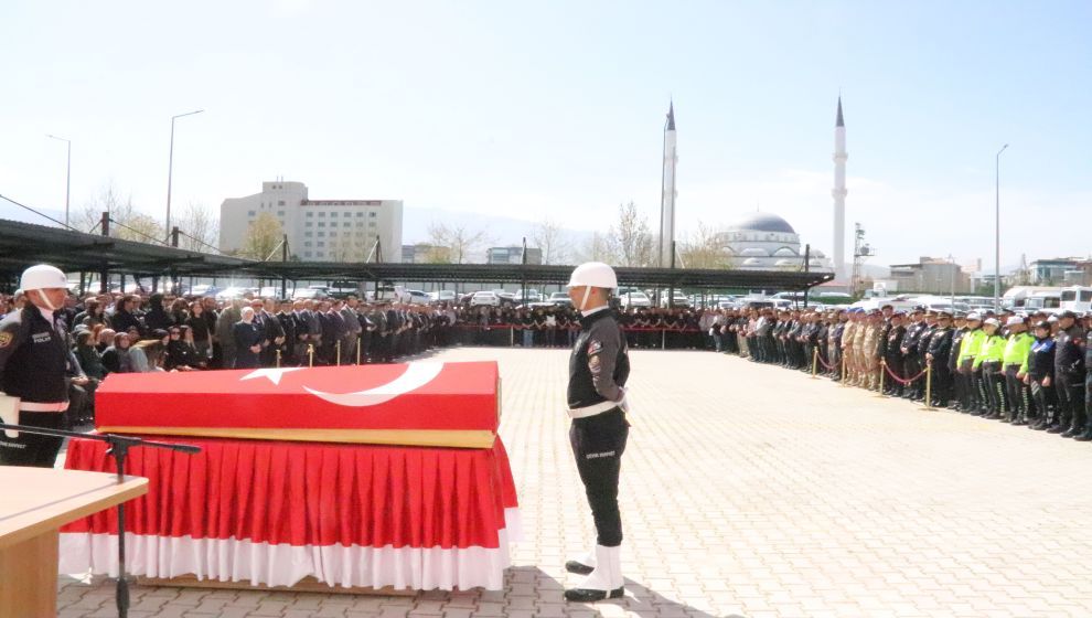 Malatya’da 2004 yılından beri görev yapan Komiser Göksel Özay için İl Emniyet Müdürlüğü’nde tören düzenlendi. Özay’ın Türk Bayrağına sarılı naaşı, çevik kuvvet polislerinin omuzunda taşınarak katafalkta konuldu.