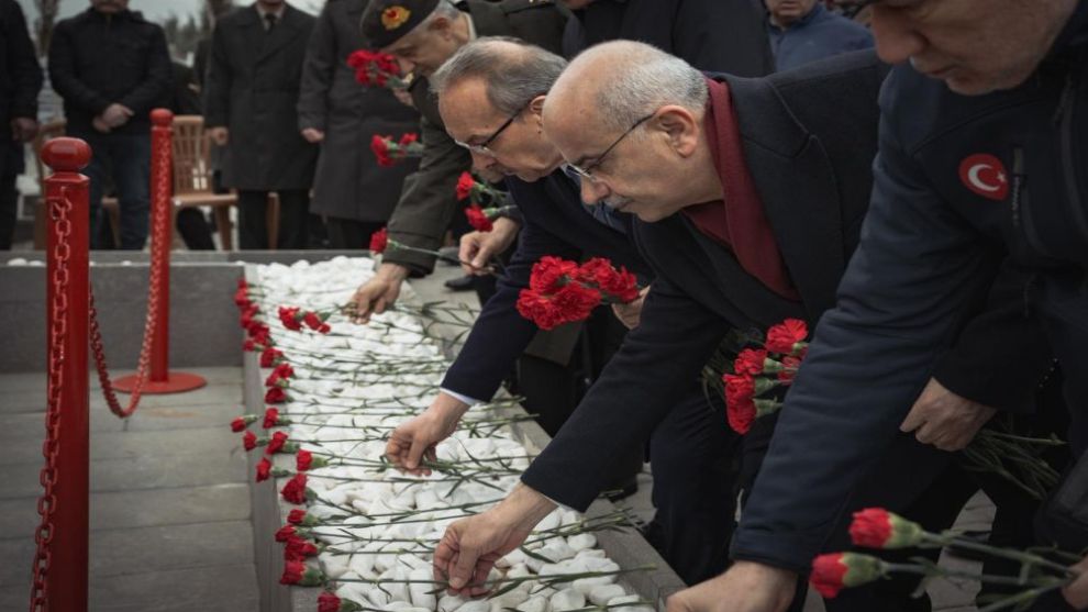 Malatya- Malatya Büyükşehir Belediye Başkanı Sami Er, 6 Şubat depremlerinin yıl dönümü dolayısıyla Malatya Valiliği tarafından 6 Şubat Deprem Şehitleri Anıtı’nda düzenlenen anma programına katıldı. Kur’an-ı Kerim tilavetinin ve duaların ardından anıta karanfil bırakan Başkan Er, Vali Seddar Yavuz ile birlikte depremde hayatını kaybedenlerin kabirlerini de ziyaret etti.