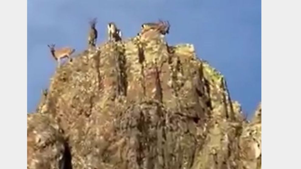 Görüntülerde, yüksek rakımlı bölgelerde gezen dağ keçilerinin doğal ortamlarında kaydedildiği görüldü.