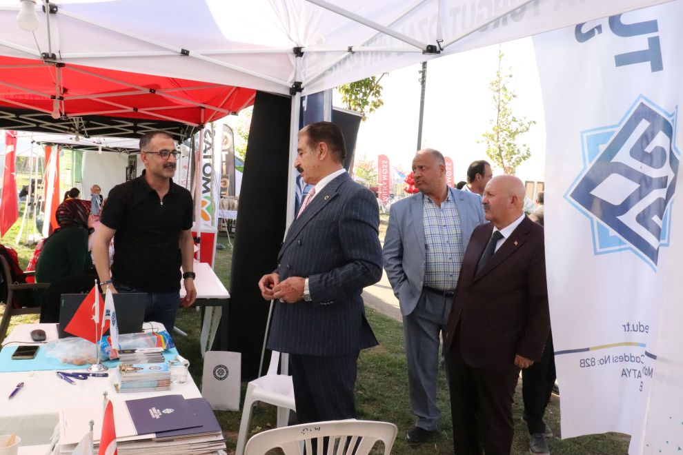 Keskin ve beraberindeki heyet, ziyaretleri sırasında hem belediyelerin tanıtım stantlarını hem de festivalde yer alan esnafların stantlarını inceleyerek bilgi aldı.