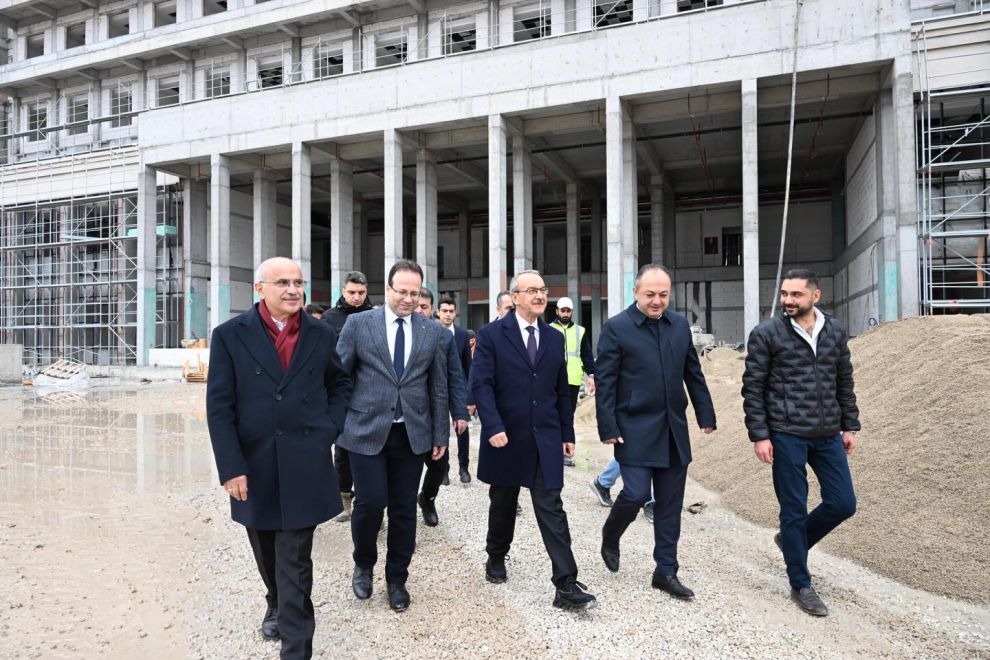 Malatya - Malatya Valisi Seddar Yavuz, Büyükşehir Belediye Başkanı Sami Er, Cumhuriyet Başsavcısı Ömer Mete ve Baro Başkanı Onur Demez, yapımı devam eden Malatya Adalet Sarayı inşaat alanında incelemelerde bulundu.