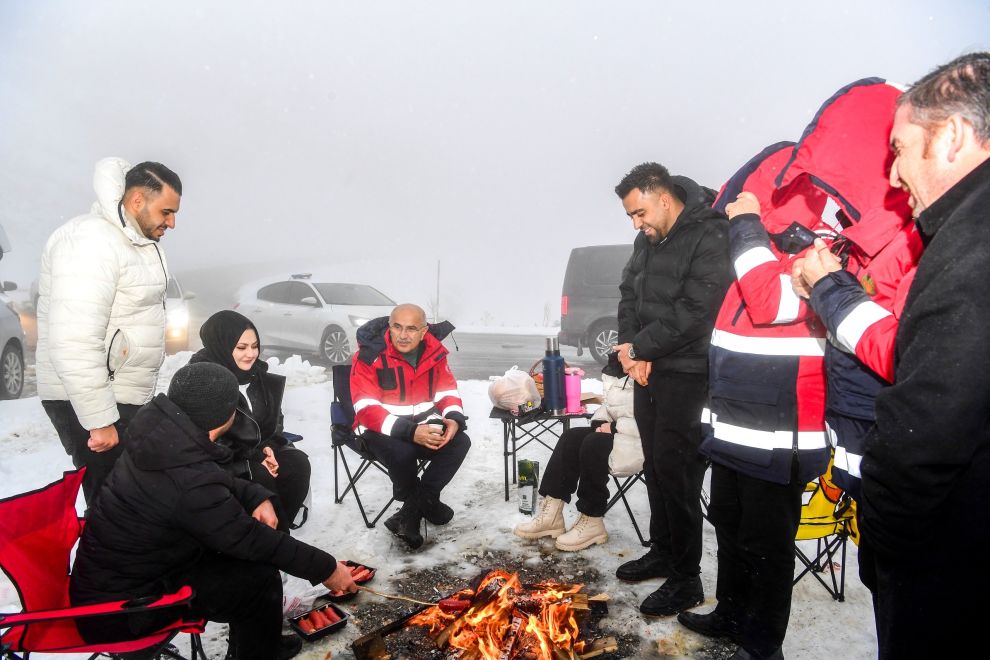 Başkan Er, açık alanda karın keşfini çıkartarak ateş yakan aileleride ziyaret ederek, çay içip sohbet etti.